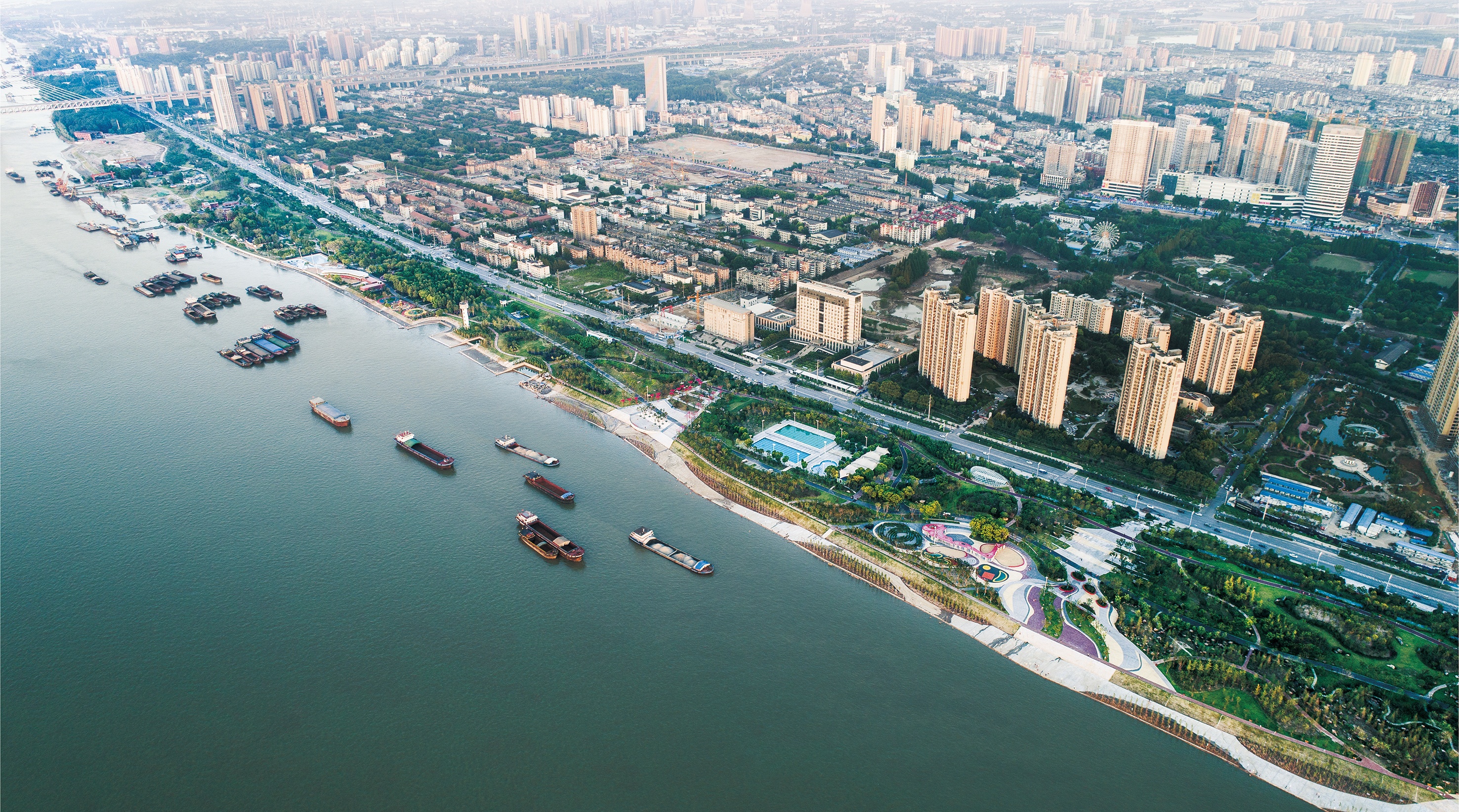 由中國一冶承建的武青堤工程是全國首批海綿城市試點項目之一,是湖北省首個“海綿”江灘和綠化比例最高的江灘,全長7.5公里,總面積135.48萬平方米。中國一冶研發(fā)應用“人水和諧多功能城市生態(tài)堤岸建造關(guān)鍵技術(shù)”,首次在長江一級干堤采用“似堤非堤”的微地形手法,打造“城市、江灘、堤防三位一體”的生態(tài)江灘。